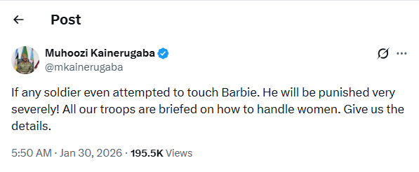 Bobi Wine, leader of the National Unity Platform (NUP), said hundreds of soldiers stormed his house on the night of Friday, January 30. Many wore UPDF and Special Forces Command uniforms. The troops arrived with ladders, broke doors, smashed windows, and held Barbie at gunpoint. They demanded to know Bobi’s whereabouts. He said the soldiers stripped her blouse, took photos, and questioned her marriage. Barbie was rushed to St. Francis Hospital Nsambya in Kampala for treatment.